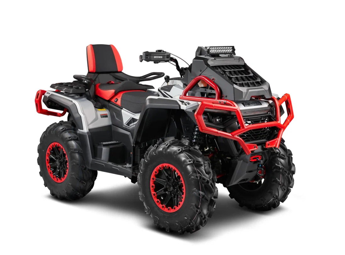 Двухместный квадроцикл с литровым мотором 91 л. с. Для мокрых маршрутов и глубокой грязи. Клиренс 33 см, вынос радиатора в комплекте, 30-дюймовые колеса с бедлоками и грязевым протектором.