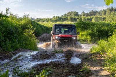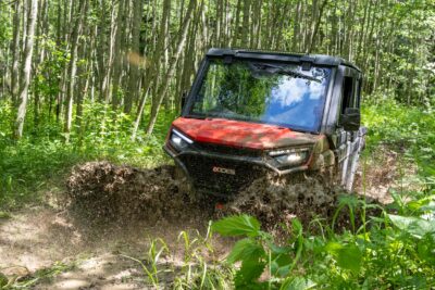 Шестиместный мотовездеход с закрытой кабиной и самосвальным кузовом. Литровый двигатель 72 л.с., клиренс 30.5 см, 27-дюймовые колеса. Есть фаркоп, электроусилитель руля, обогреватель и кондиционер. Регулируемые амортизаторы.