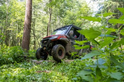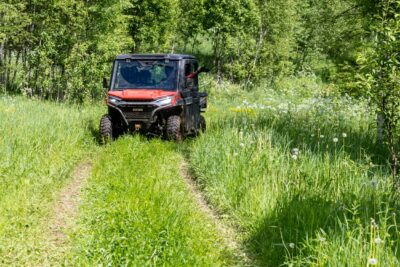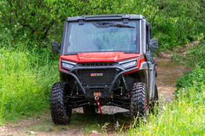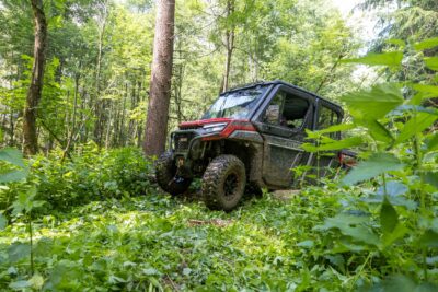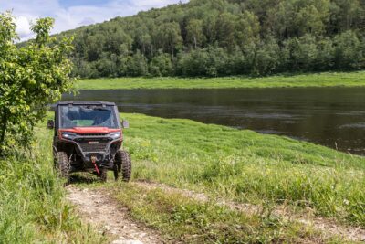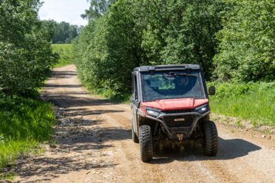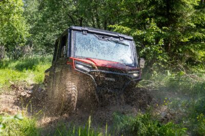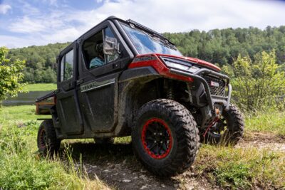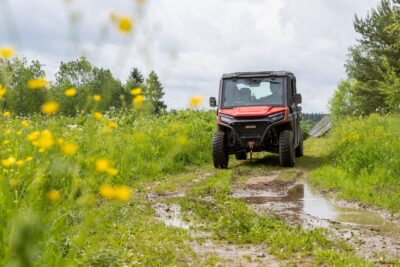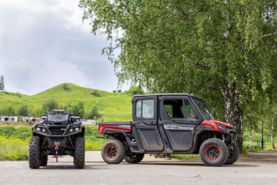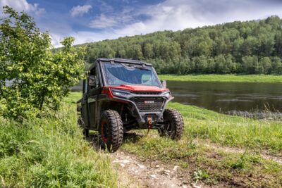 В комплектацию входит электроусилитель руля, электролебедка, зеркала заднего вида и 27-дюймовые покрышки. У версии HVAC полностью закрытая кабина: есть крыша, ветровое стекло со стеклоочистителем, заднее стекло, полные двери. Внутри кабины есть обогреватель и кондиционер, поэтому зимой будет тепло, а летом — не жарко.