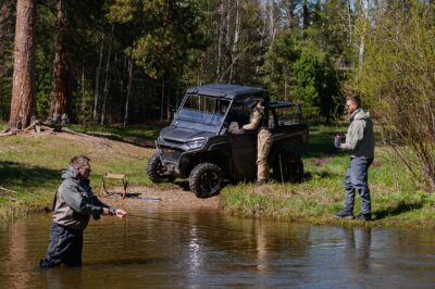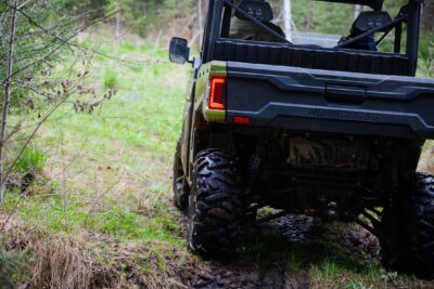 Трехместный мотовездеход с закрытой кабиной и самосвальным кузовом. 800-кубовый двигатель 60 л.с., клиренс 30.5 см, 27-дюймовые колеса. Есть фаркоп, электроусилитель руля, обогреватель и кондиционер.
