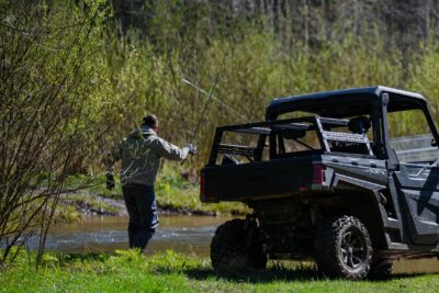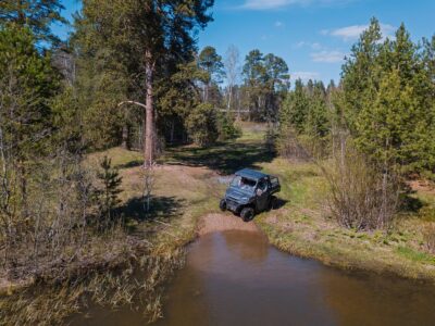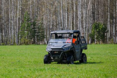 В комплектацию входит электроусилитель руля, электролебедка, зеркала заднего вида и 27-дюймовые покрышки. У версии HVAC полностью закрытая кабина: есть крыша, ветровое стекло со стеклоочистителем, заднее стекло, полные двери. Внутри кабины есть обогреватель и кондиционер, поэтому зимой будет тепло, а летом — не жарко.