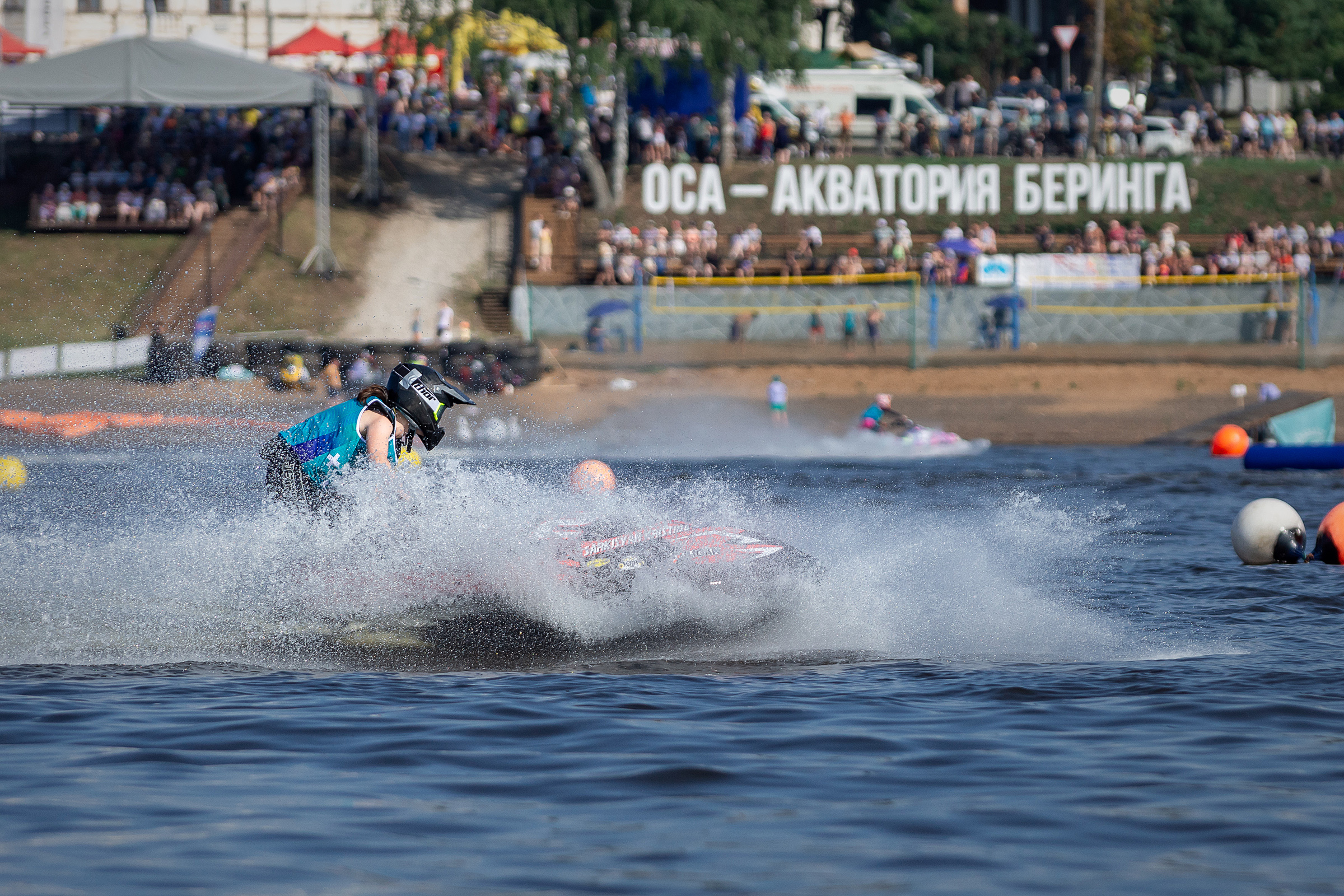 Самыми зрелищными стали дисциплины вотеркросс – катание на снегоходах по воде и слалом, когда параллельно с аквабайком в небе летал вертолет, который в дальнейшем приземлялся прямо на волнорез на берегу акватории. Спортивная программа дополнилась турниром по пляжному волейболу среди любителей, собравшим сотни болельщиков.